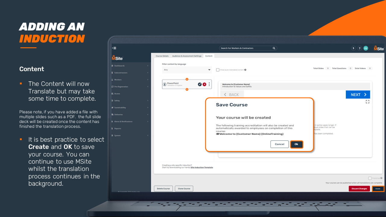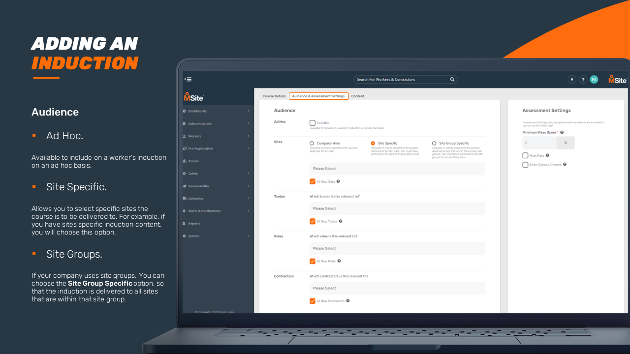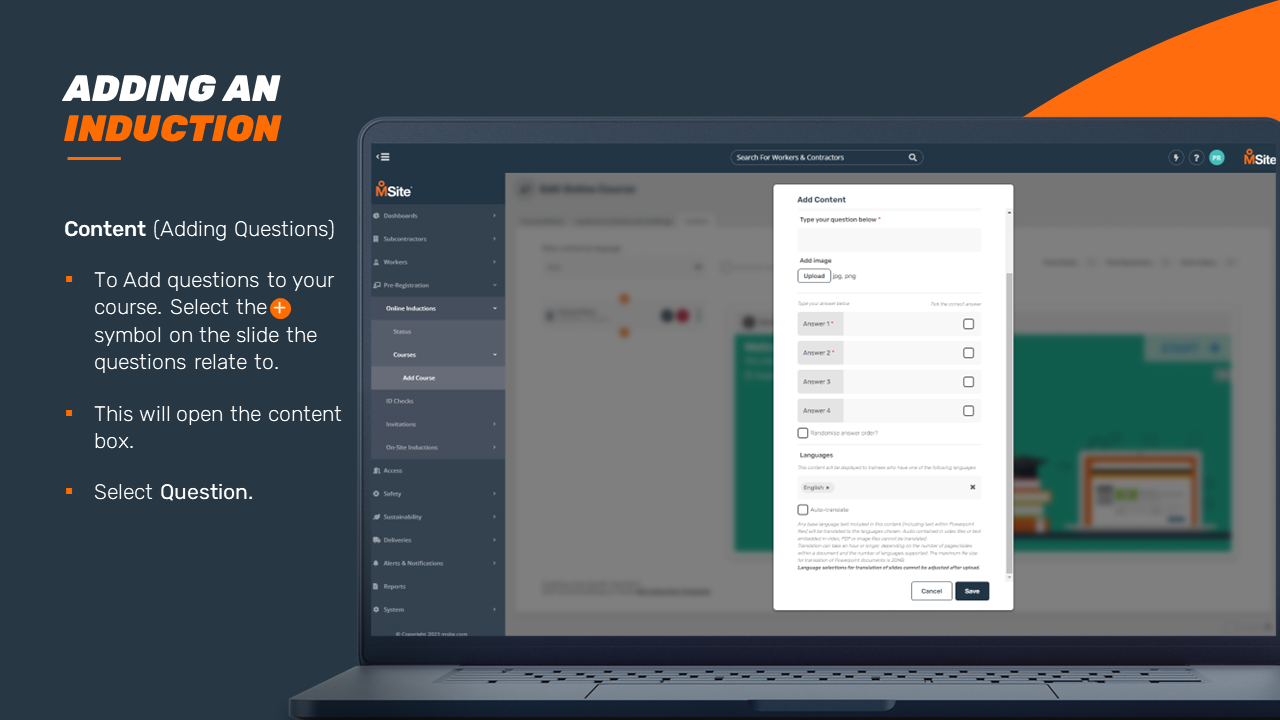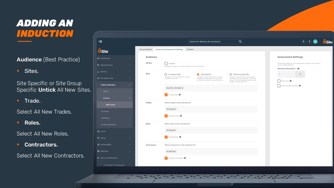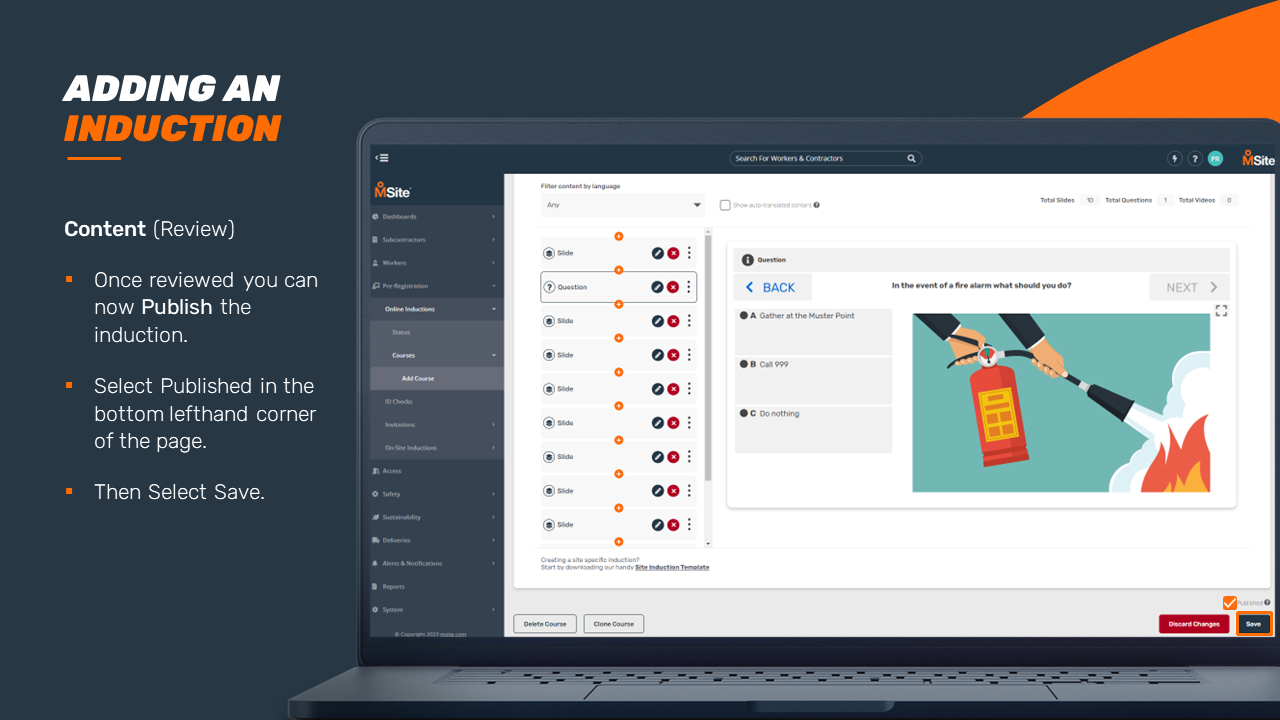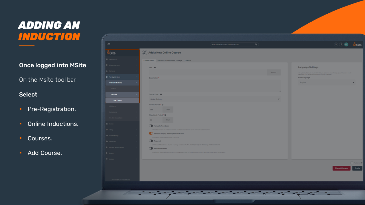 GUIDE - Adding an Induction Course (Enhanced) This step-by-step is to be used as a guide when creating a new induction for your business. Related to Add Inductions Was this article helpful? Yes No 1 out of 1 found this helpful