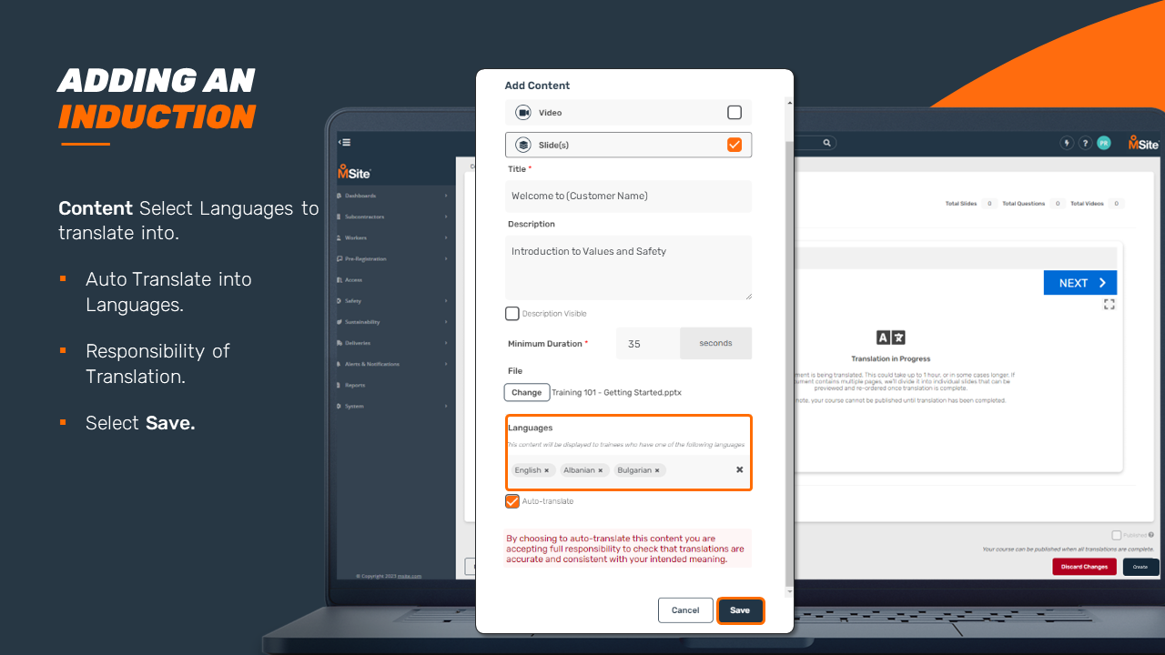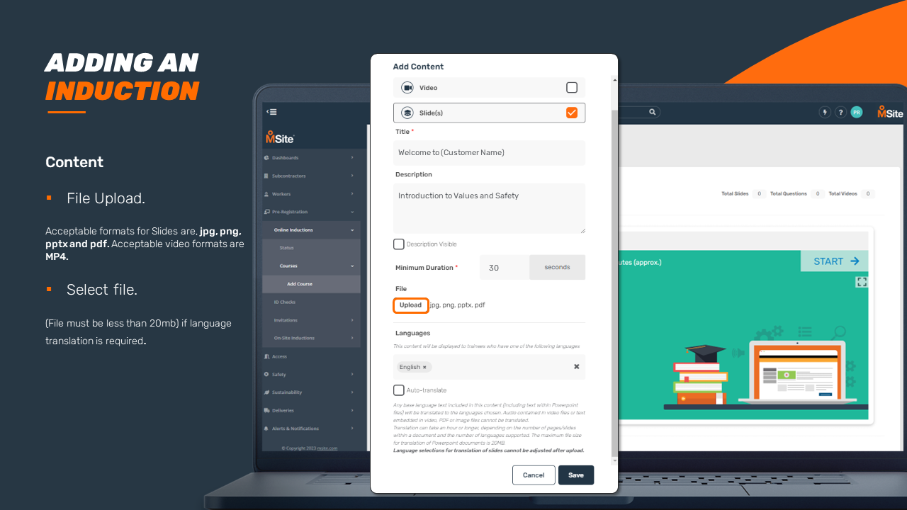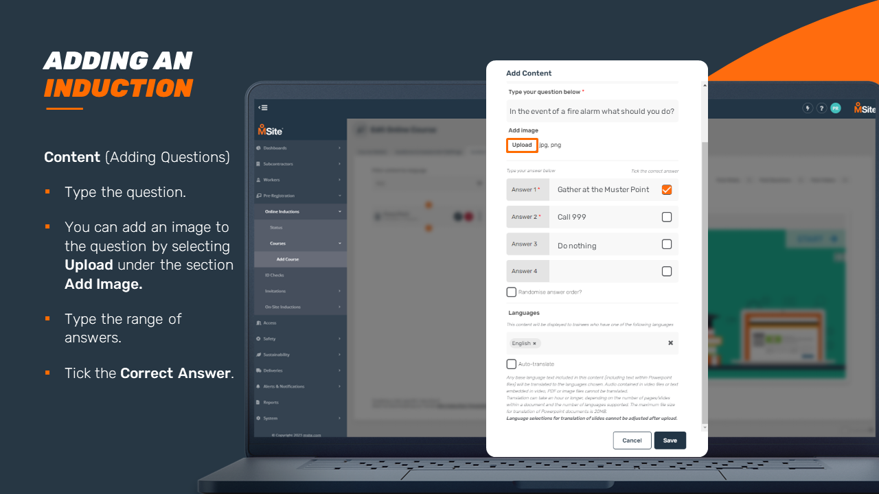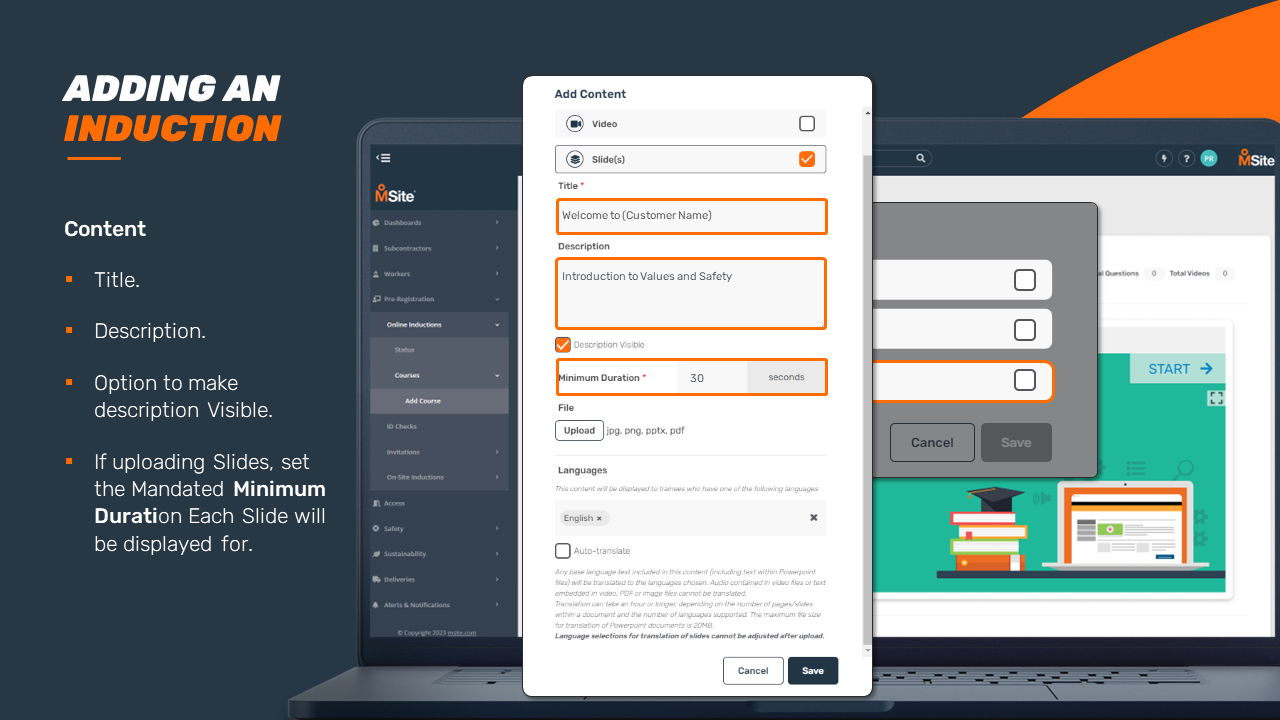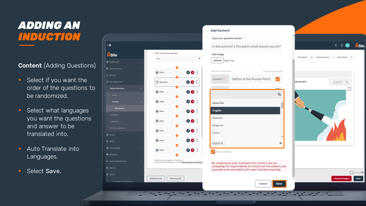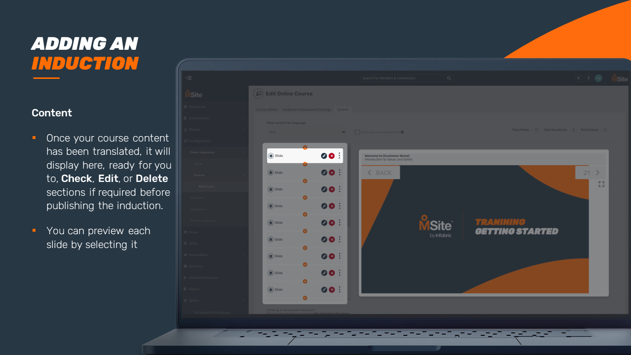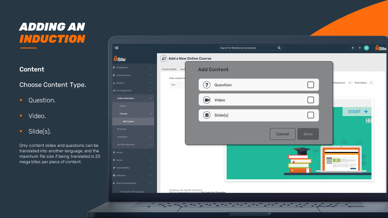 GUIDE - Adding an Induction Course (Enhanced) This step-by-step is to be used as a guide when creating a new induction for your business. Related to Add Inductions Was this article helpful? Yes No 1 out of 1 found this helpful