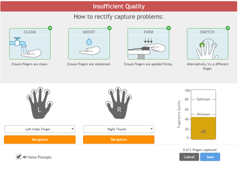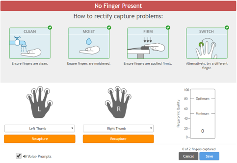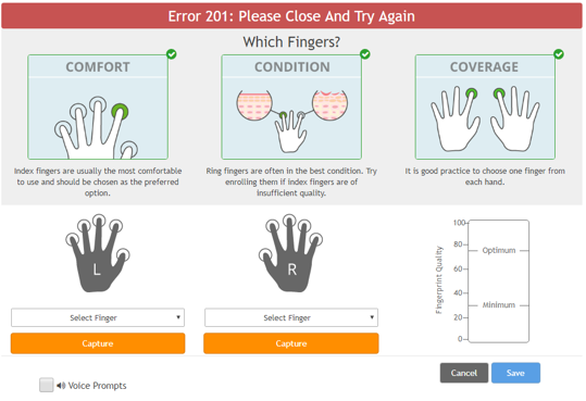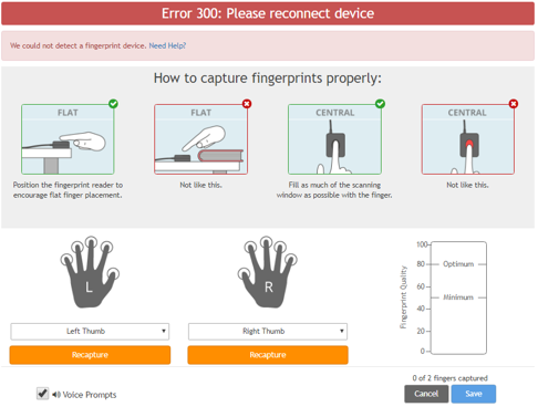 This article lists the error messages you may see when using the web fingerprint enrolment service, what they mean and how you can resolve them.