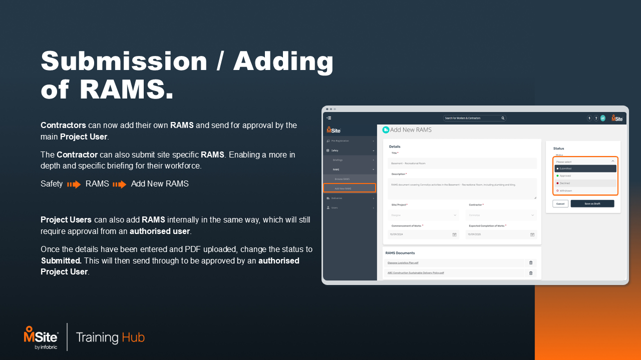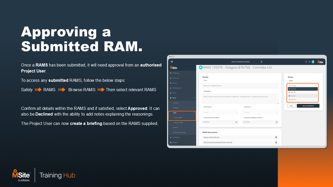 GUIDE - MSite RAMS Related to Briefing Safety RAMS GUIDE - MSite RAMS.pdf1 MB Was this article helpful? Yes No 0 out of 0 found this helpful
