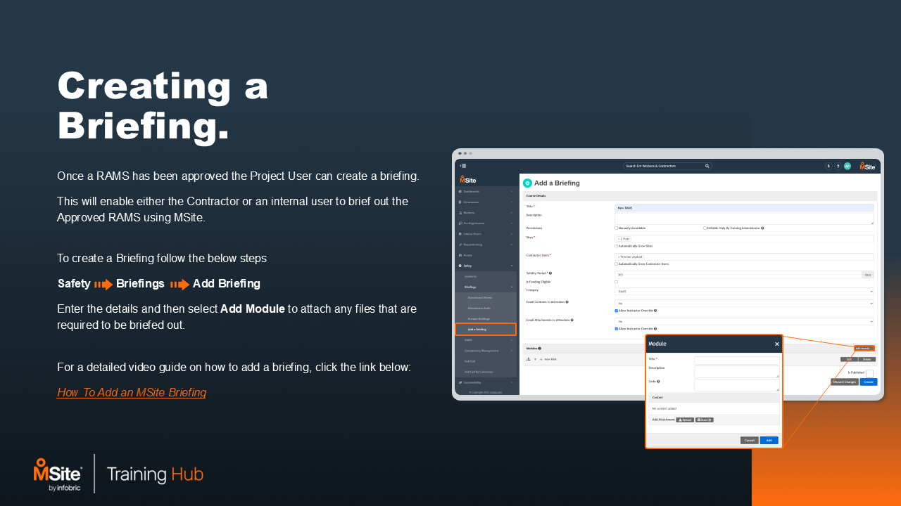 GUIDE - MSite RAMS Related to Briefing Safety RAMS GUIDE - MSite RAMS.pdf1 MB Was this article helpful? Yes No 0 out of 0 found this helpful