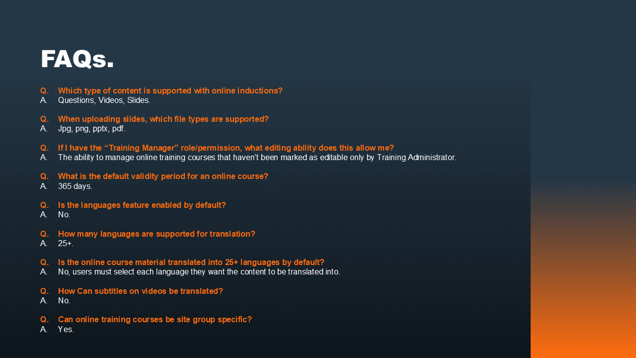 FAQs - Enhanced Online Inductions Related to Inductions FAQ Online Inductions GUIDE - Enhanced Online Inductions FAQs.pdf600 KB Was this article helpful? Yes No 0 out of 0 found this helpful