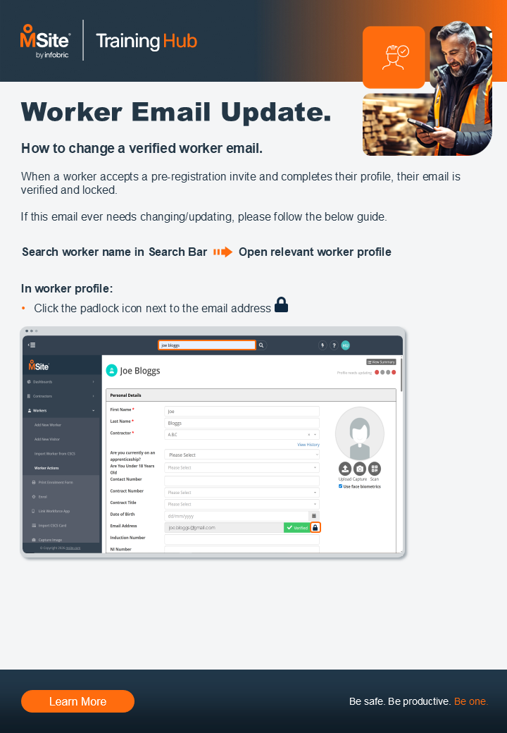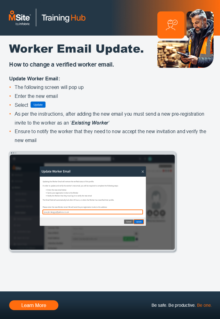 ONE PAGER - How to Update a Verified Worker Email Related to Worker Profile Update Worker Profile Email One Pager - Worker Email Update.pdf700 KB Was this article helpful? Yes No 0 out of 0 found this helpful