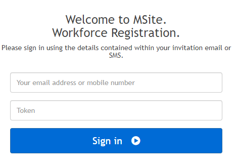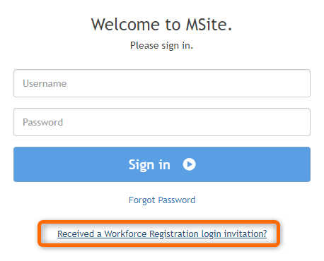 1 - Navigate to MSite and click 'Received a Workforce Registration login invitation?'.